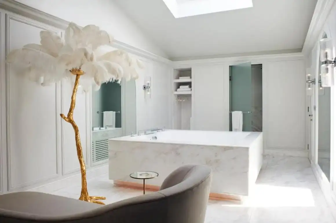 В этом отеле есть множество различных люксов, большинство из которых оснащены большой гидромассажной ванной в ванной комнате. Эти полностью мраморные ванные комнаты настолько элегантны, насколько это возможно, с освещением в старинном стиле и туалетными принадлежностями известных брендов. Я могу только представить, как приглушаю свет и наслаждаюсь тихим вечером в этой ванне.