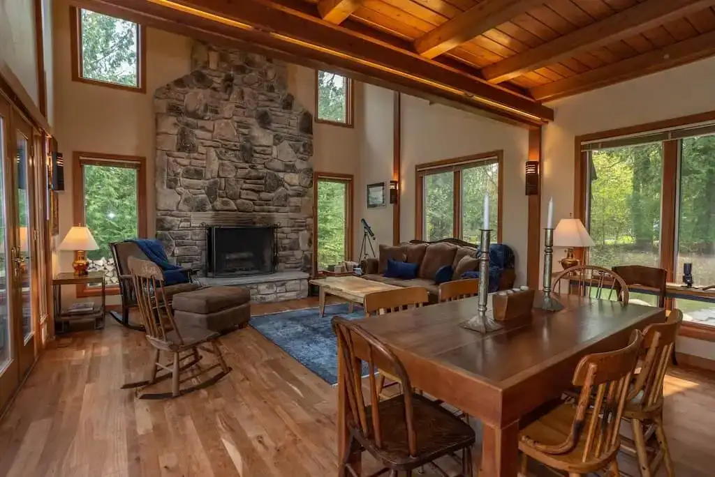 Эта каюта — идеальное место, чтобы отключиться от всего этого и провести время с близкими и семьей. Мы имеем в виду это в буквальном смысле, так как здесь нет Wi-Fi, так что если вы хотите настоящий лесной отдых, то это он! В отеле есть полностью оборудованная кухня, где можно приготовить еду, а также фантастический гриль Weber, где можно вечером попробовать хот-доги и гамбургеры. После захода солнца соберитесь вокруг костра, чтобы услышать жуткие истории, а затем ретируйтесь в безопасную хижину.